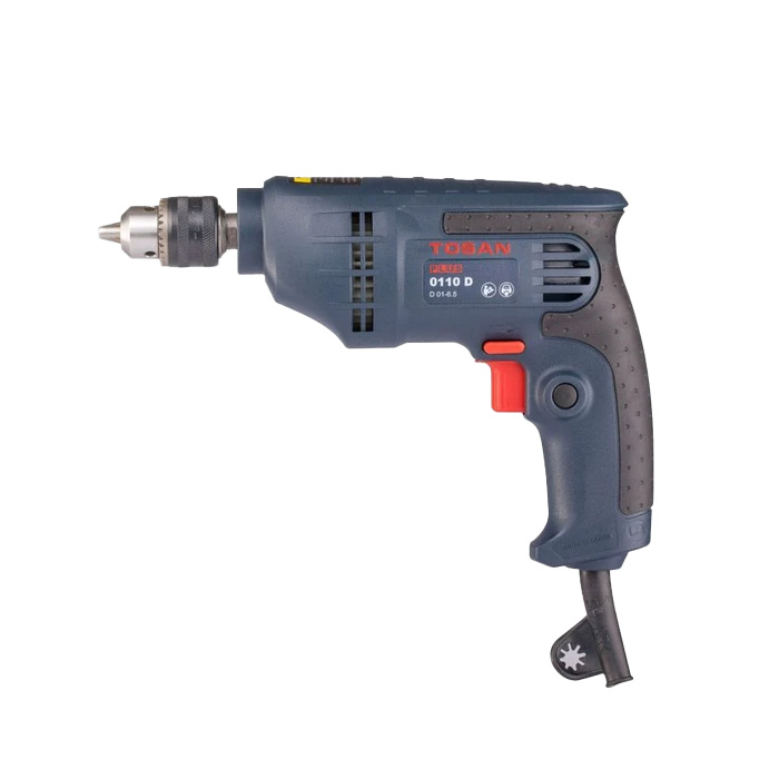 دریل برقی 6.5 میلیمتر توسن مدل 0110D با توان 300 وات و سرعت گردش آزاد 0 تا 3800 دور بر دقیقه طراحی شده است و برای سوراخکاری در سطوح چوبی و فلزی مورد استفاده قرار میگیرد. این دستگاه به سهنظام آچارخور با ظرفیت 0.5 تا 6.5 میلیمتر مجهز است و امکان استفاده از متههای متنوع را فراهم میکند. حداکثر قطر سوراخکاری در فولاد 6.5 میلیمتر و در چوب 10 میلیمتر است. در ساختار این ابزار، شستی چپگرد و راستگرد بهصورت مجزا از کلید برق تعبیه شده تا کنترل جهت چرخش موتور بهصورت مستقل انجام گیرد. کلید برق از نوع گازی بوده و برای استفادههای متوالی، قفلکن مخصوصی برای ثابتنگهداشتن آن در نظر گرفته شده است. بدنهی دستگاه با رعایت اصول ارگونومی طراحی شده و دستهی این دستگاه دارای روکش سافتگریپ است تا در زمان کار طولانی، کنترل دستگاه حفظ شود. وزن این دریل توسن 1.1 کیلوگرم بوده و کابل برق آن با طول 2 متر و روکش ضخیم، مقاومت مناسبی در برابر خمشدگی و سایش دارد.